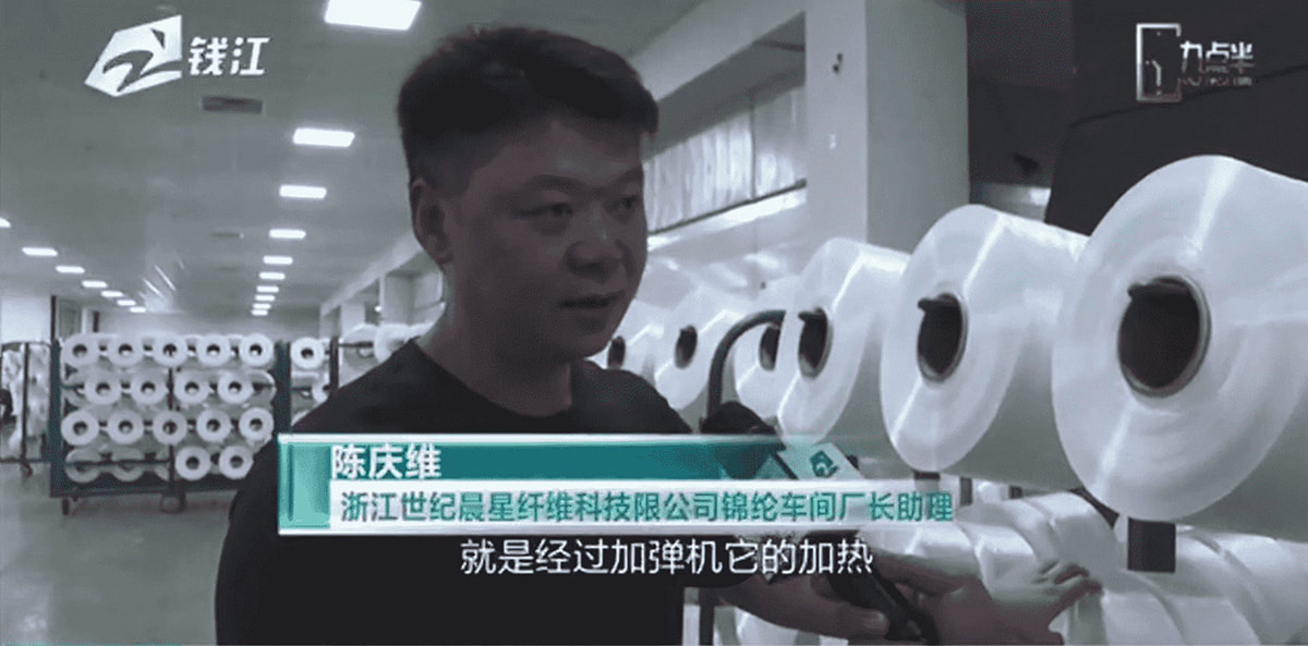 Yu Weimin, biträdande chef för Zhejiang Century ChenXing Fiber Technology Co., Ltd., svarar på journalisters frågor
